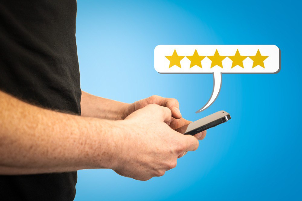 A happy customer giving a 5-star review. Delivering excellent experiences at each stage of the journey turns clients into enthusiastic advocates