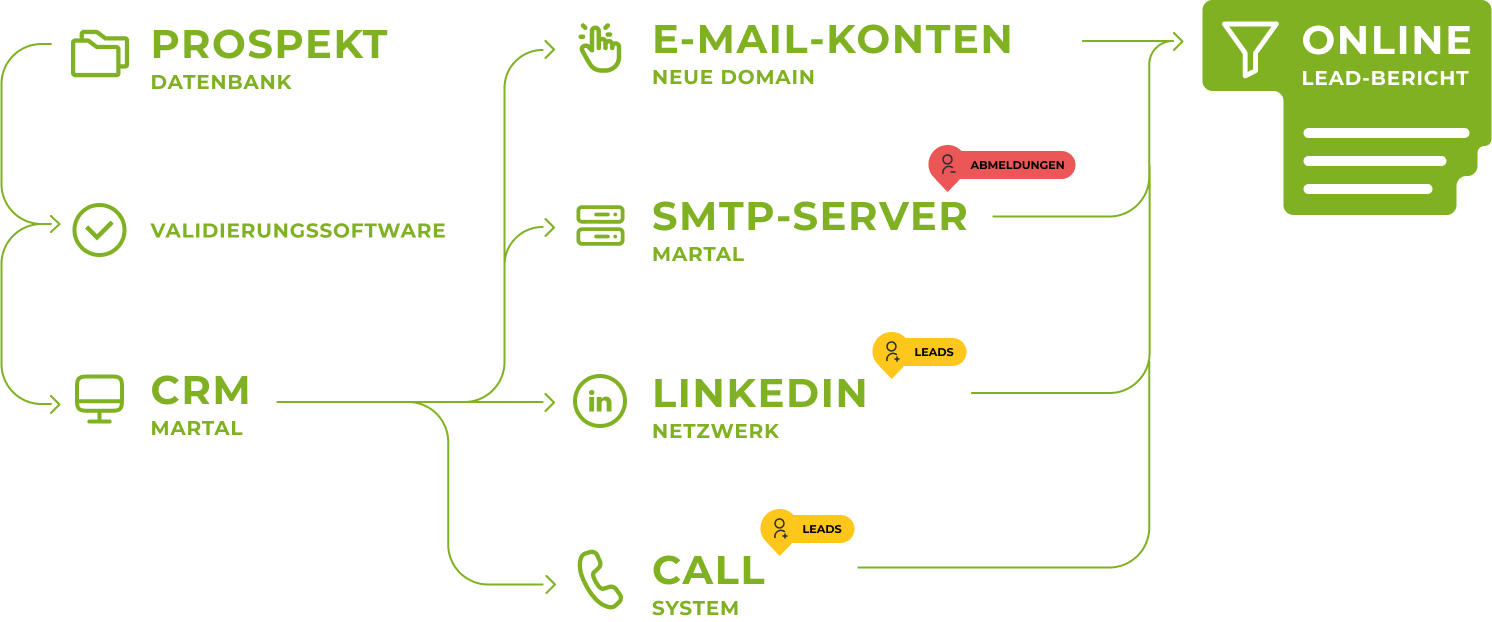 Der Kern des Erfolgs unserer Kunden ist unser vielfältiges Team aus leistungsstarken Vertriebsleitern, von denen jeder eine einzigartige Perspektive und einzigartige Fähigkeiten mitbringt.Unsere preisgekrönten Dienstleistungen wurden für ihre Effektivität und ihren Einfluss auf das Umsatzwachstum ausgezeichnet. Wir ruhen uns jedoch nicht nur auf Auszeichnungen aus; wir nutzen modernste Prospektionstools, die tief in die Kaufabsicht sowie technografische und psychografische Daten eintauchen. Unsere proprietären Prozesse zur Lead-Generierung und bewährten Workflows wurden über die Jahre hinweg verfeinert, um sicherzustellen, dass wir nicht nur Leads, sondern qualifizierte Chancen mit echtem Potenzial liefern. Dieser ganzheitliche Ansatz stärkt unsere Kunden und hilft ihnen, durch den Zustrom hochwertiger Leads und wertvoller Verkaufsgespräche schneller zu wachsen. Mit der Martal Group investieren Sie in Exzellenz, Innovation und ROI-orientierte Ergebnisse.